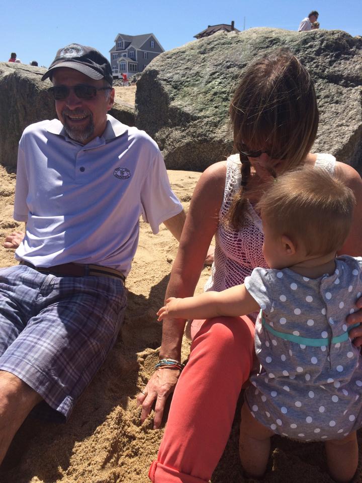 We also celebrated my first Mother’s Day (actually my second one, since last year I was preggo and Dan bought me a dozen roses, a bag of Doritos and a giant slice of nutella coffee cake) on Sunday and this year Dan decided to get food poisoning or some other horrific stomach virus at 7am on Sunday morning, leaving me on my own for most of the day. He did manage to hold it together long enough so that I could have a shower without a baby in tow – which is, you know, pretty much what every new mom wants for Mother’s Day – so its all good. And the day turned out pretty great anyway since I was able to meet my parents in Newburyport and spend the day with them eating, going to the beach and walking around town. Mia pulled herself up to standing for the first time and also got her own pancake for the first time. She ate at least 50% of it, which I found to be pretty impressive considering she only weighs 18 pounds.